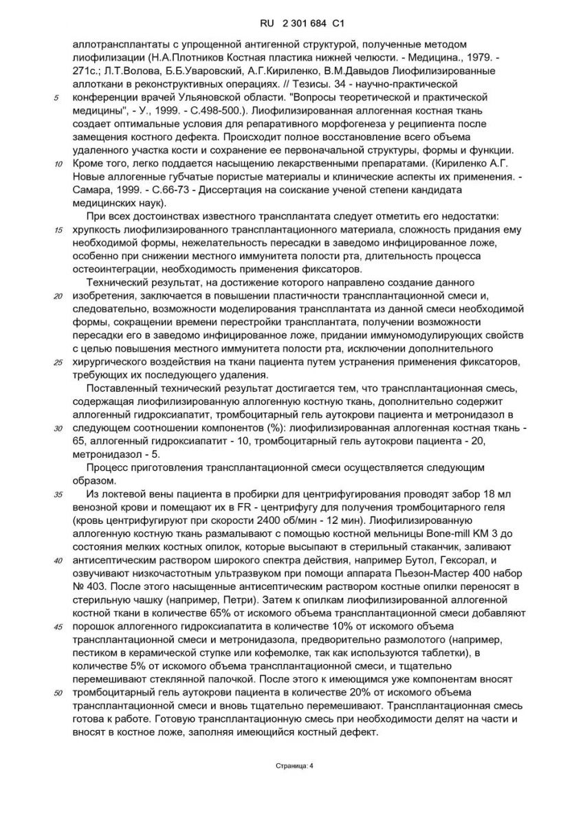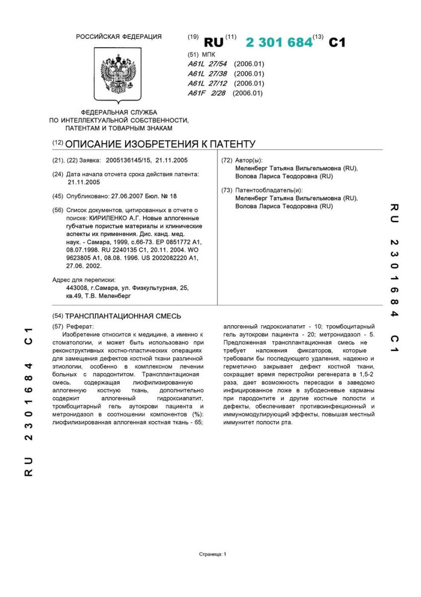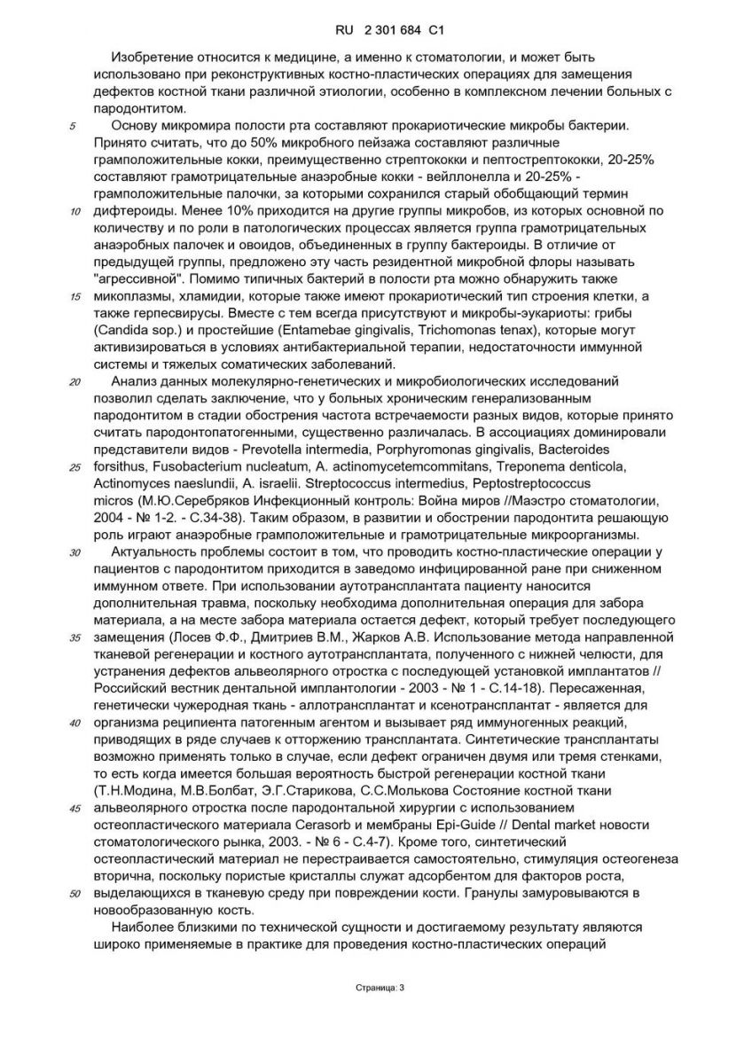 (19) RU(11) 2 301 684(13) C1 (51) Int. Cl. A61L 27/54 (2006.01) A61L 27/38 (2006.01) A61L 27/12 (2006.01) A61F 2/28 (2006.01) (12)