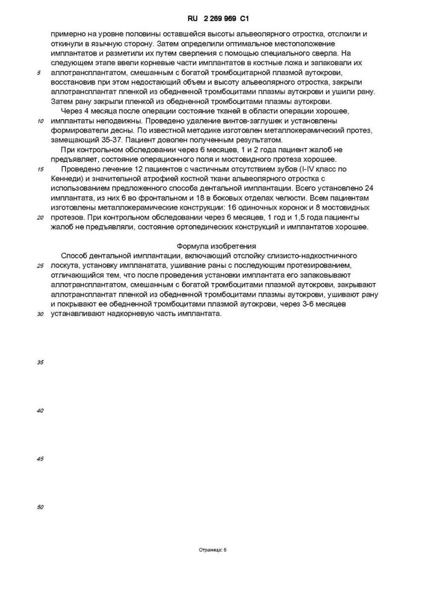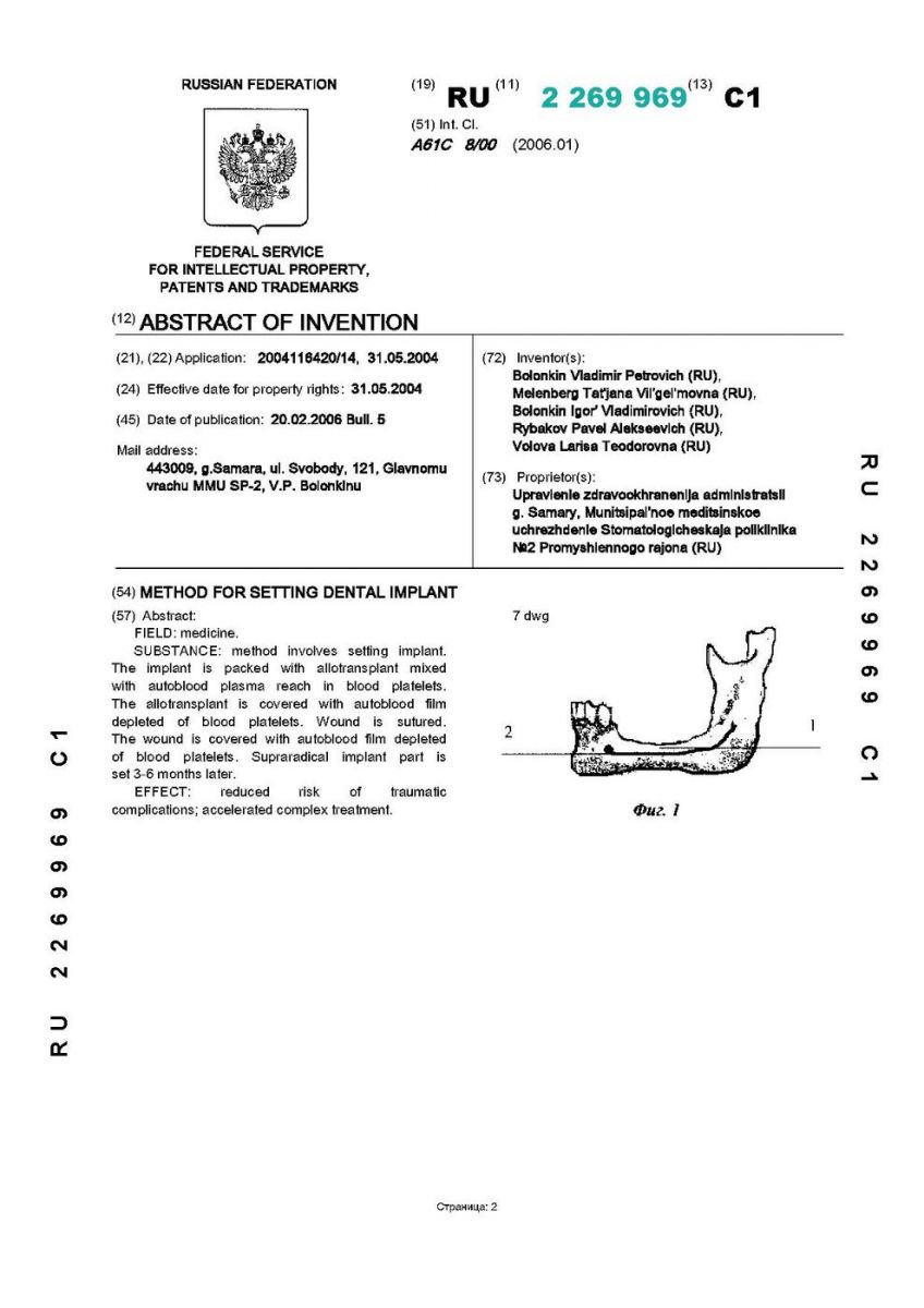 Proprietor(s): Upravlenie zdravookhranenija administratsii g. Samary, Munitsipal'noe meditsinskoe uchrezhdenie Stomatologicheskaja poliklinika ¹2 Promyshlennogo rajona (RU) (54) METHOD FOR SETTING DENTAL IMPLANT (57)