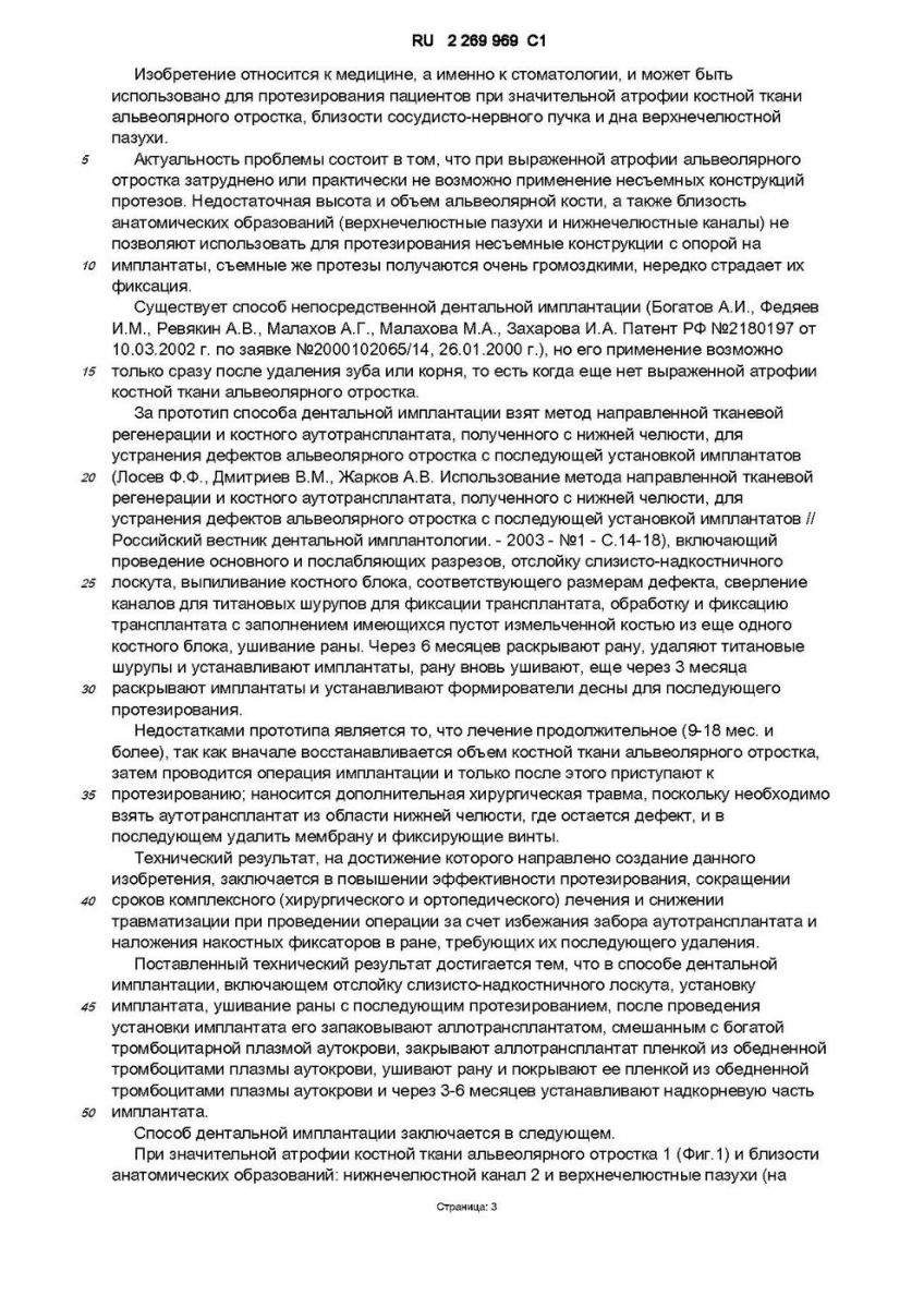 RUSSIAN FEDERATION FEDERAL SERVICE FOR INTELLECTUAL PROPERTY, PATENTS AND TRADEMARKS (19) RU (11) 2 269 969(13) C1 (51) Int. Cl. A61C 8/00 (2006.01) (12) ABSTRACT OF INVENTION (21), (22)